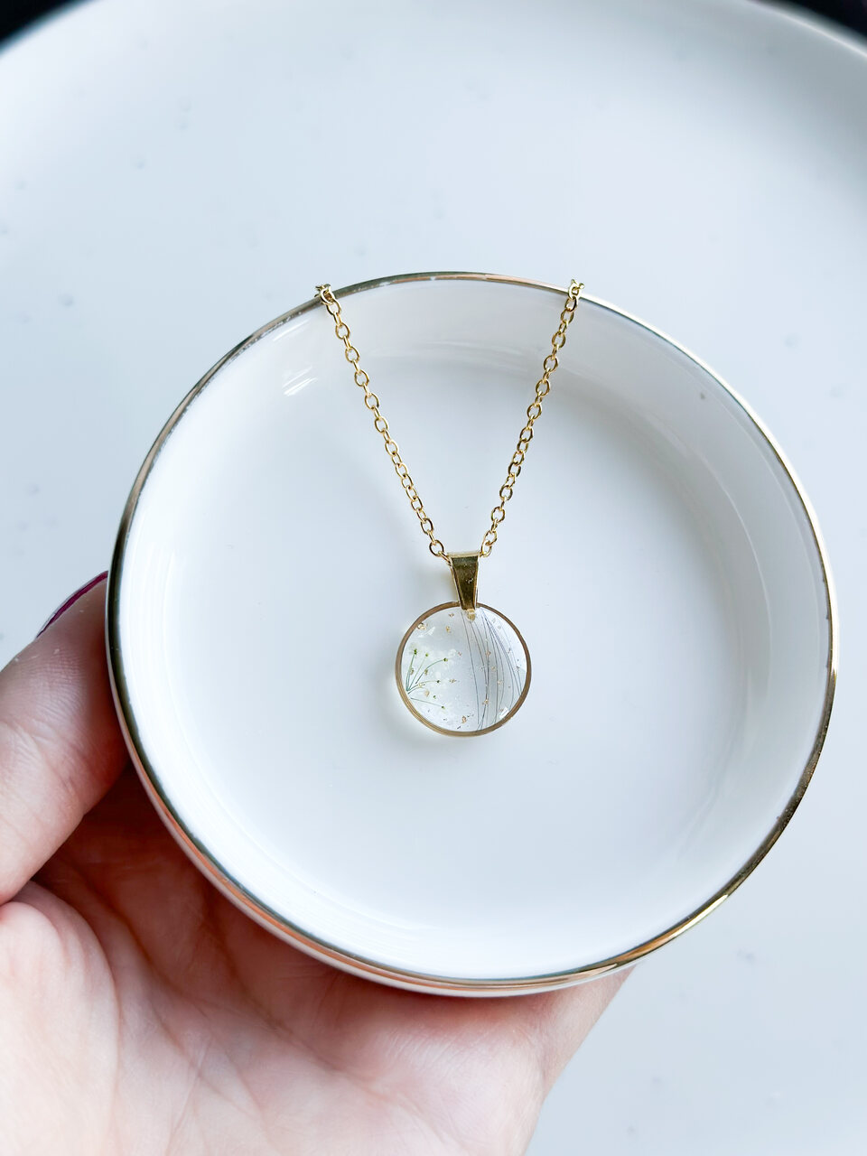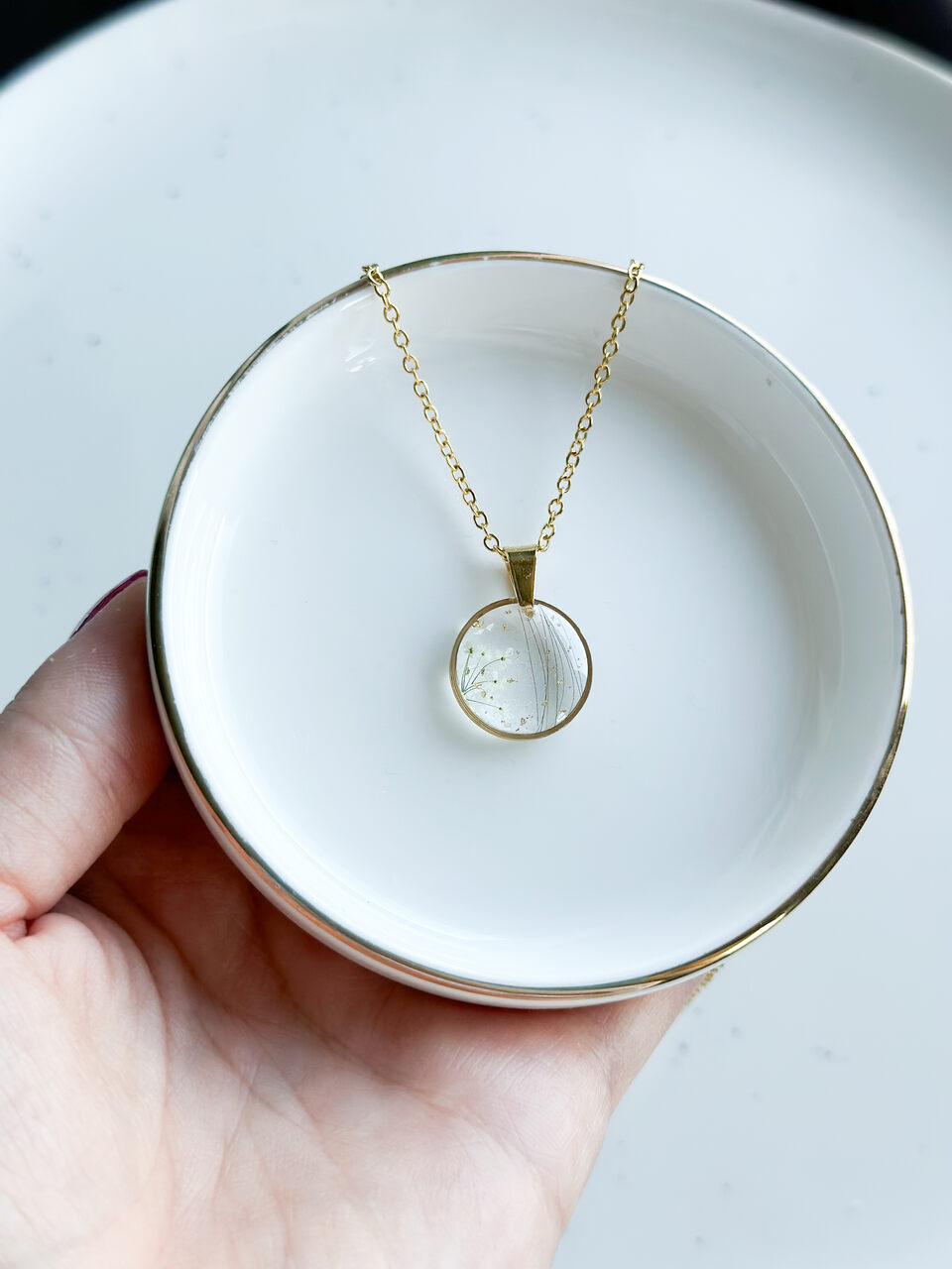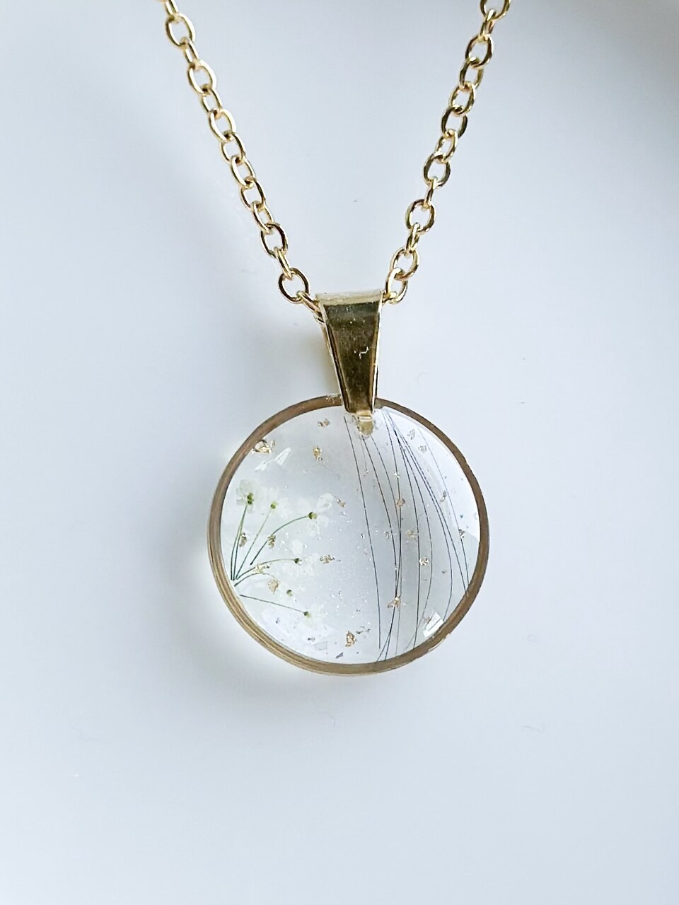 💛 Naszyjnik Kółko z Sierścią Twojego Pupila i Kwiatami Marchwii Zwyczajnej – Biżuteria z Sierścią Zwierząt