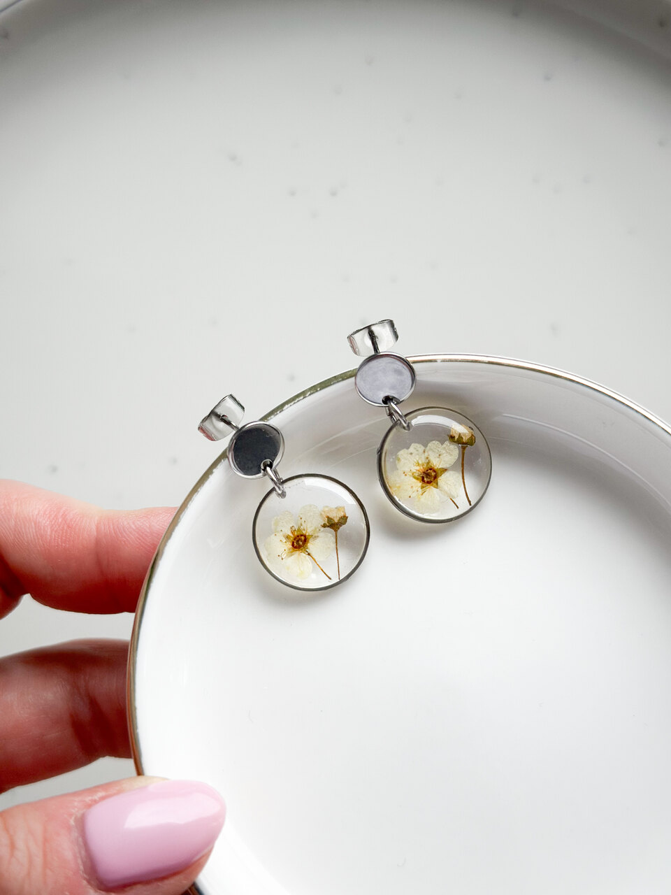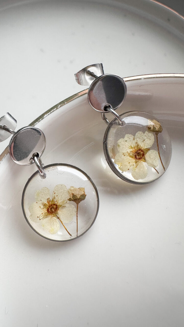 Ręcznie robiona biżuteria z suszonych kwiatów zatopionych w żywicy