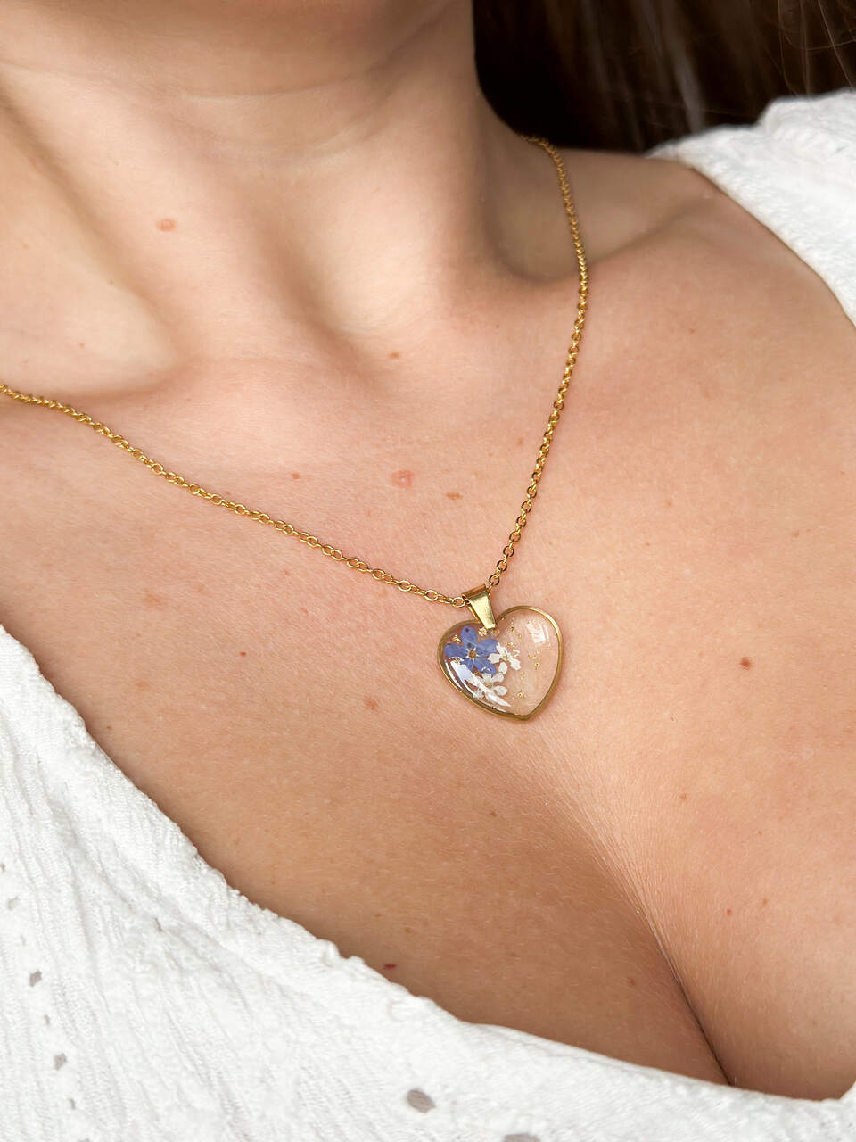 naszyjnik z niezapominajkami, biżuteria handmade, naszyjnik z żywicy, naszyjnik serce, naszyjnik z kwiatami, biżuteria z żywicy, ręcznie robiona biżuteria, naszyjnik z prawdziwymi kwiatami, złoty naszyjnik z kwiatami, prezent dla niej, romantyczna biżuteria, naszyjnik z niebieskimi kwiatami, naszyjnik z białymi niezapominajkamiNaszyjnik serce z niezapominajkami
