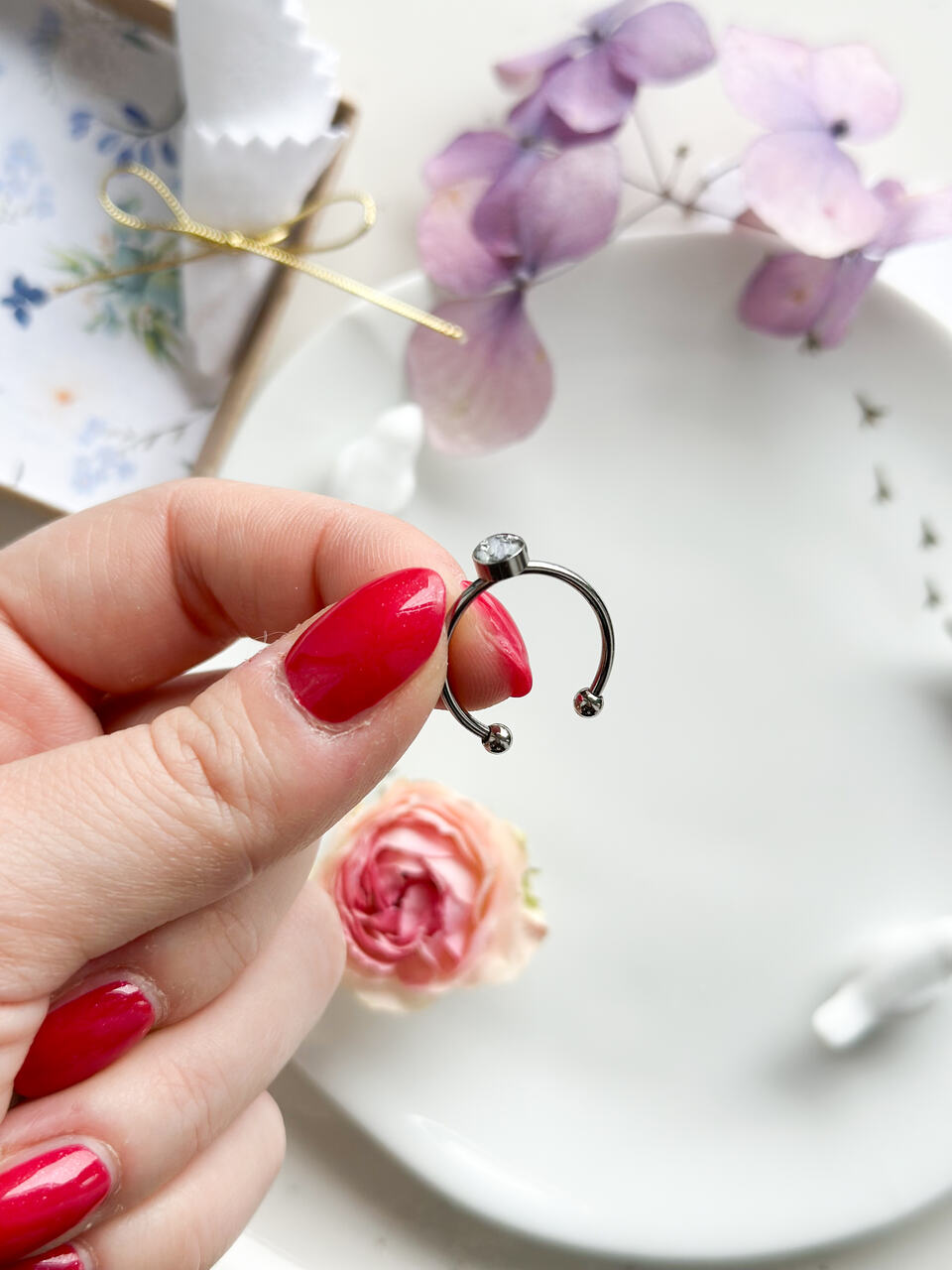 - Uniwersalny Rozmiar – Regulowana obrączka sprawia, że pierścionek pasuje na każdy palec.